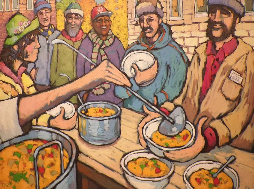 I often think we, as a species, are at our best when we are helping each other. I hope to build a continuing body of work that illustrates the act of human kindness toward one another. The subject matter will be based on a mingling of real life encounters and my imagination, with the hope of creating works capable of inspiring a sense of good will.